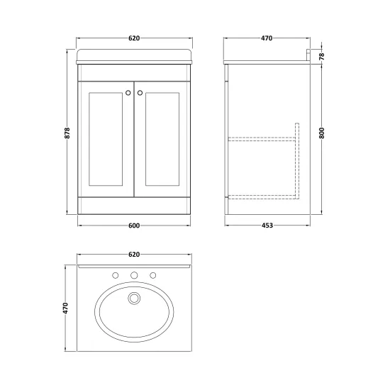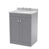 Nuie Classique 600mm Satin Grey Traditional Floor Standing 2 Door Vanity Unit With 3 Tap Hole Basin
