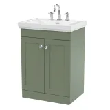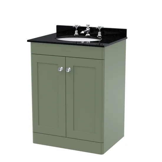 Nuie Classique 600mm Satin Green Floor Standing 2 Door Vanity Unit With 3 Tap Hole Basin