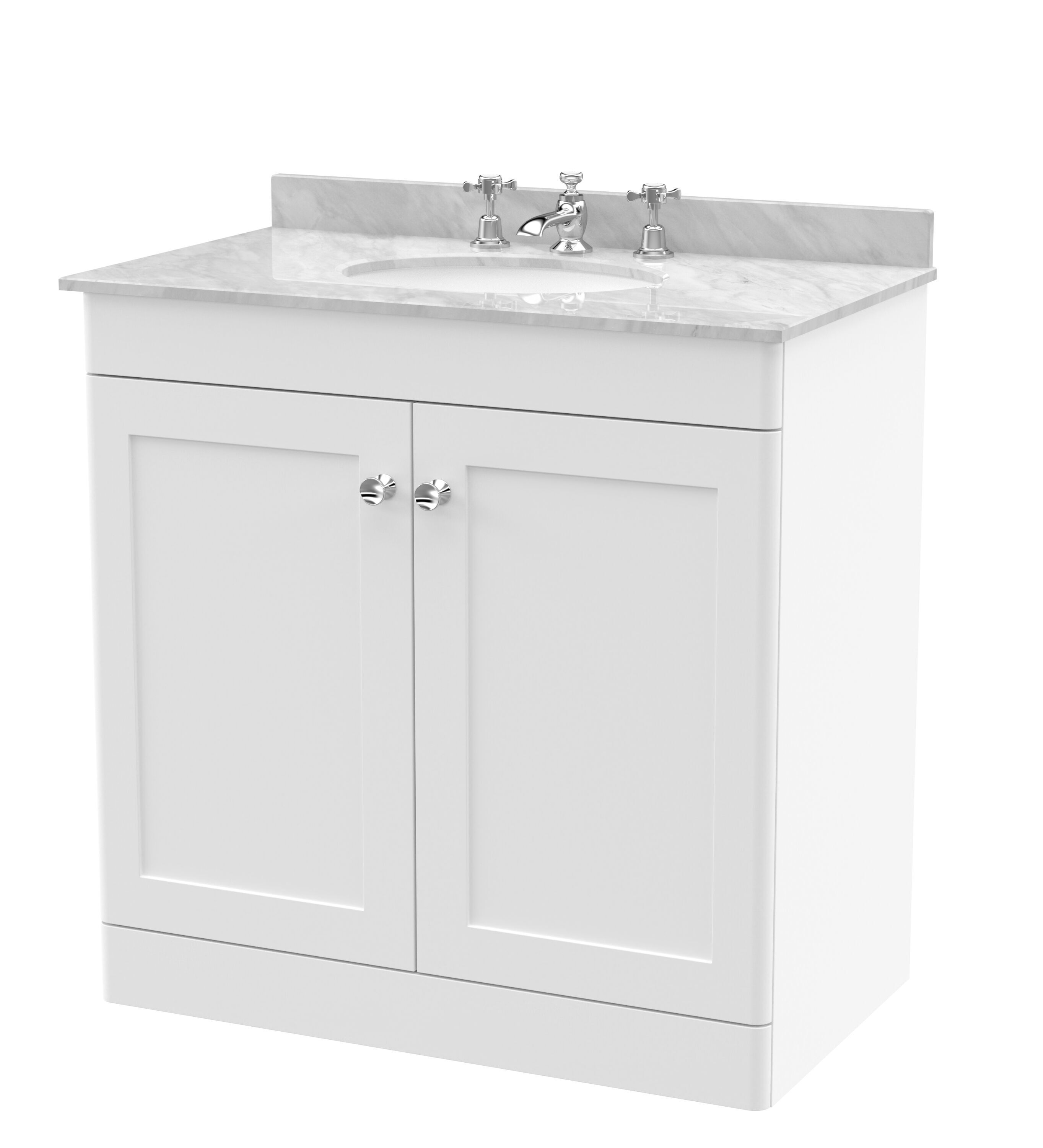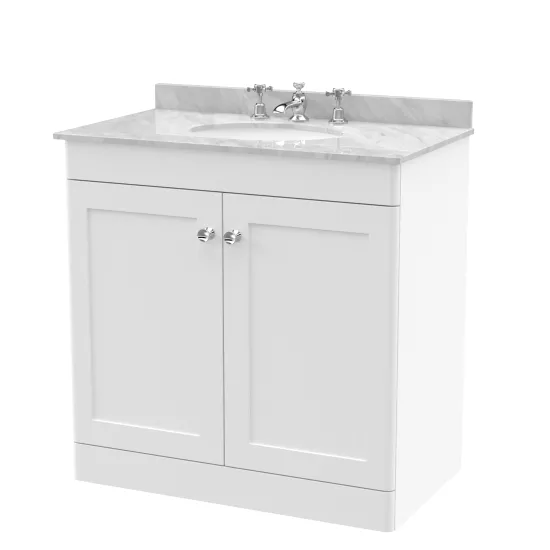 Nuie Classique 800mm Satin White Floor Standing 2 Door Vanity Unit with 3 Tap Hole Basin
