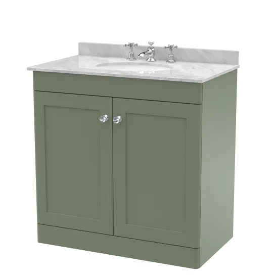 Nuie Classique 800mm Satin Green Floor Standing 2 Door Vanity Unit With Basin, 3 Tap Holes & Backsplash