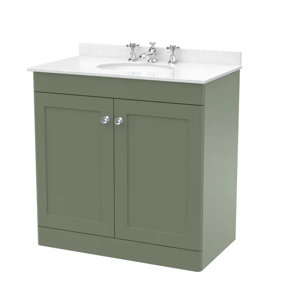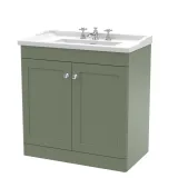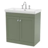 Nuie Classique 800mm Satin Green Floor Standing 2 Door Vanity Unit with 3 Tap Hole Basin