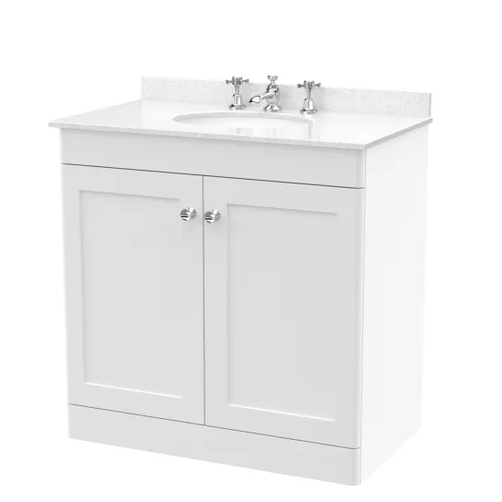 Nuie Classique 800mm Satin White Floor Standing 2 Door Vanity Unit with 3 Tap Hole Basin