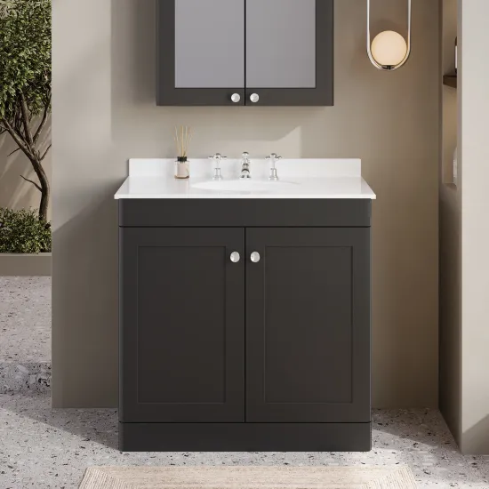 Nuie Classique 830mm Soft Black Floor Standing 2 Door Vanity Unit with 3 Tap Hole Basin