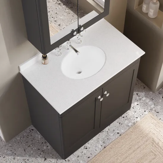 Nuie Classique 830mm Soft Black Floor Standing 2 Door Vanity Basin Unit With Handles