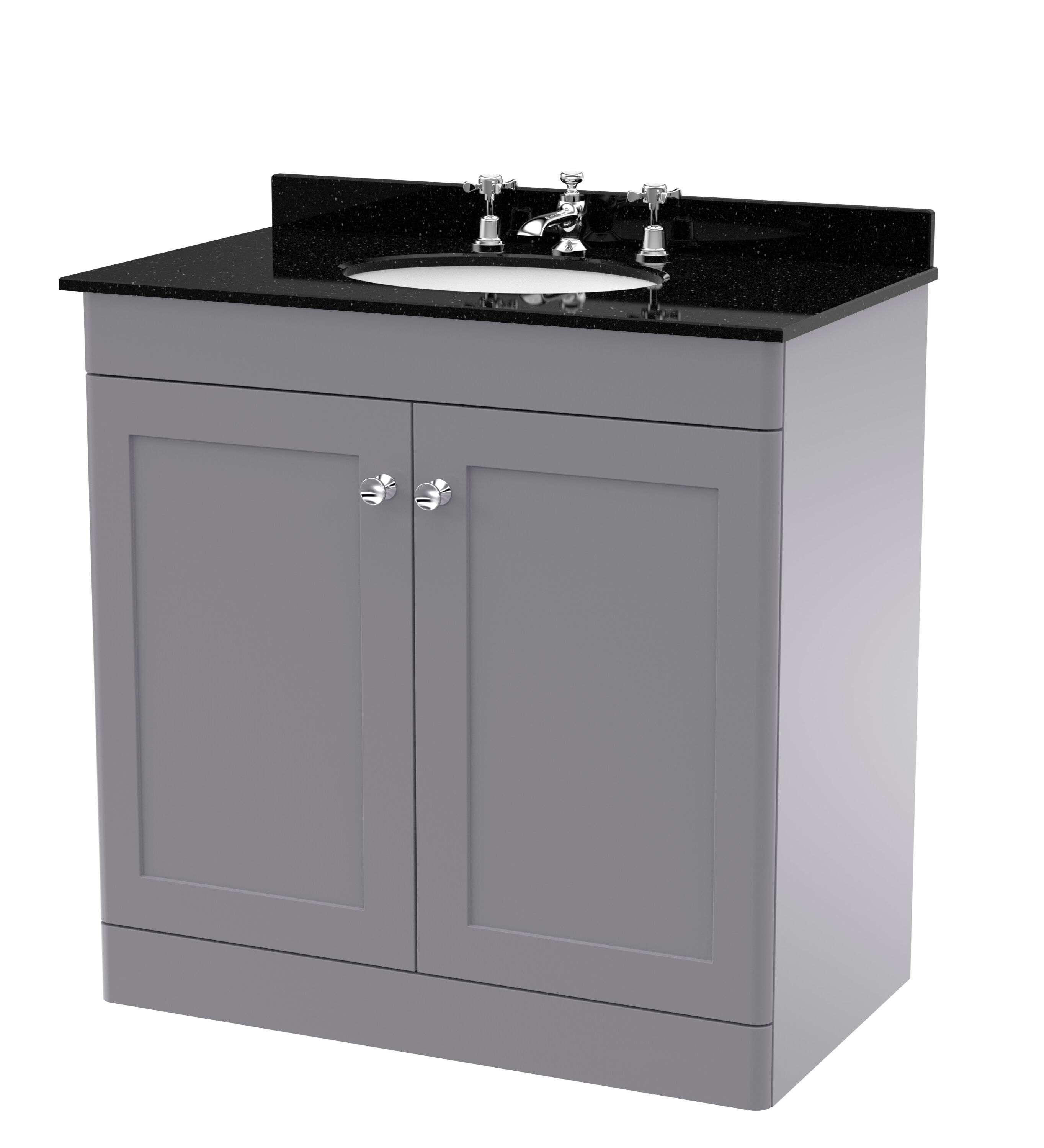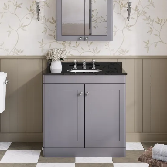 Nuie Classique 800mm Satin Grey Floor Standing 2 Door Vanity Unit with 3 Tap Hole Basin & Backsplash