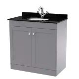 Nuie Classique 800mm Satin Grey Floor Standing 2 Door Vanity Unit With 1 Tap Hole Basin