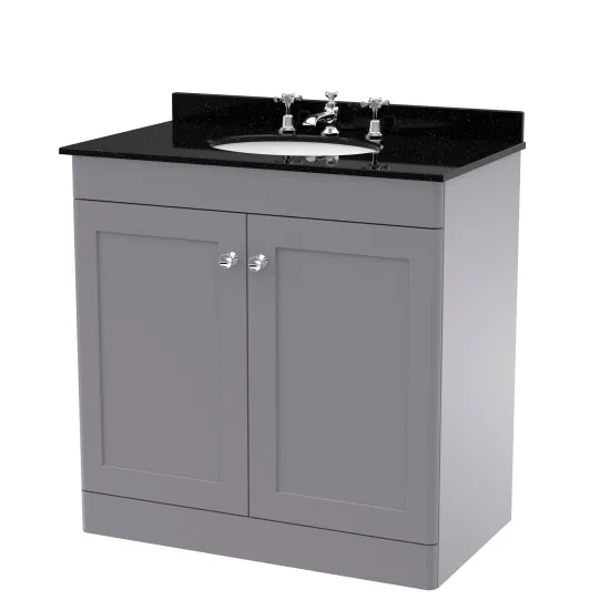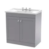 Nuie Classique 800mm Satin Grey Floor Standing 2 Door Vanity Unit with 3 Tap Hole Basin