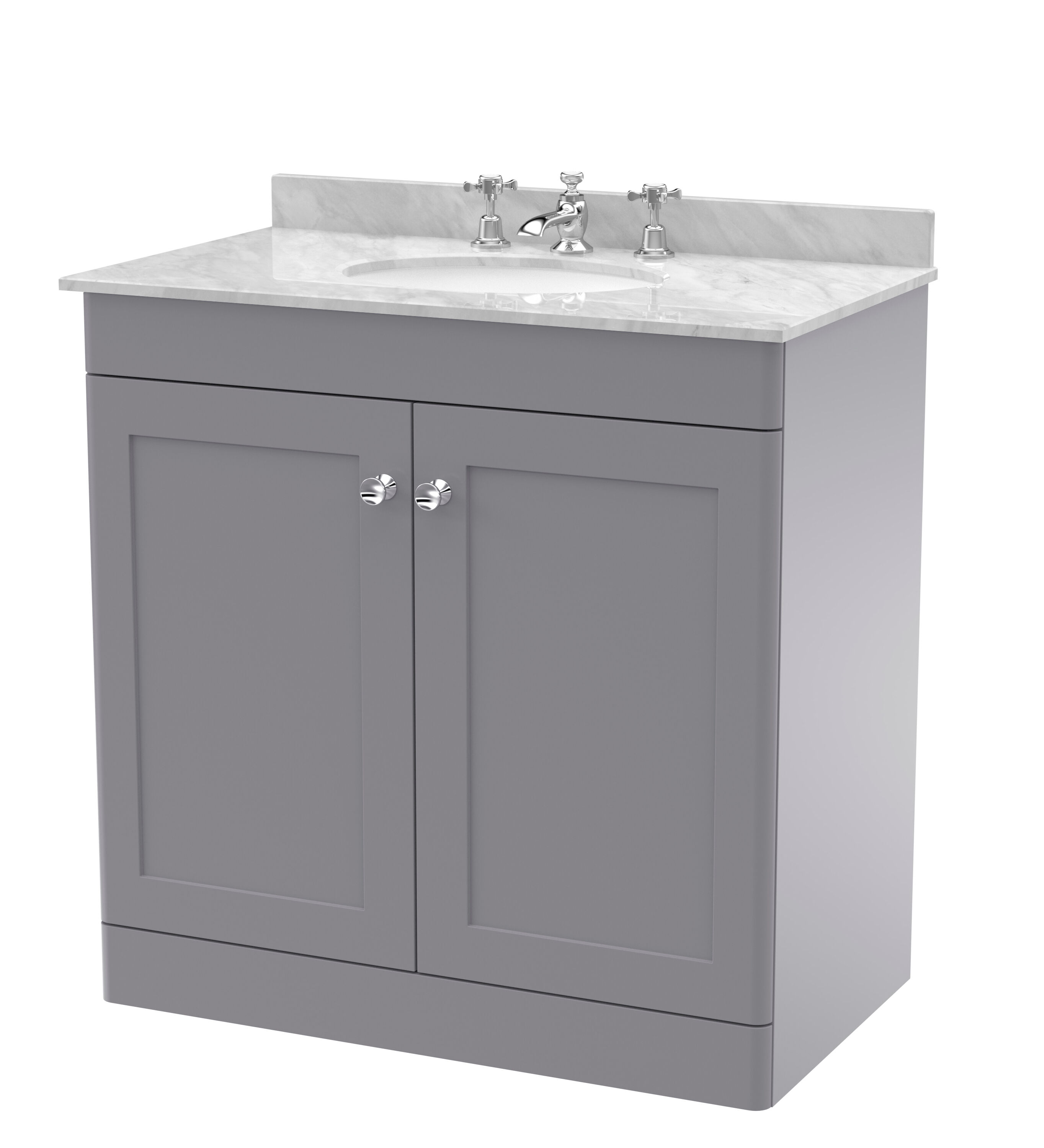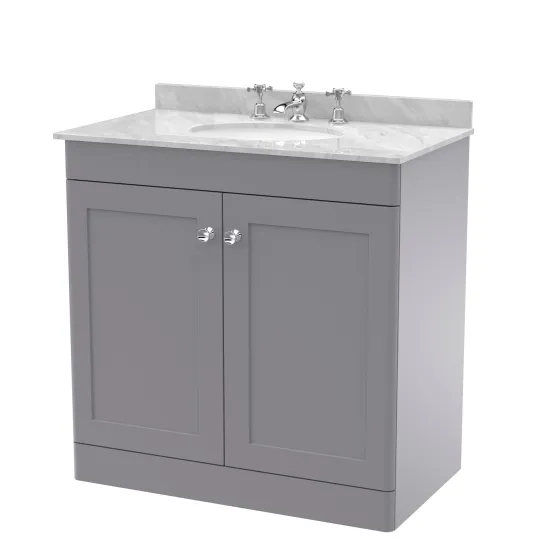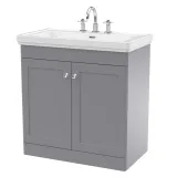 Nuie Classique 800mm Satin Grey Floor Standing 2 Door Vanity Unit with 3 Tap Hole Basin