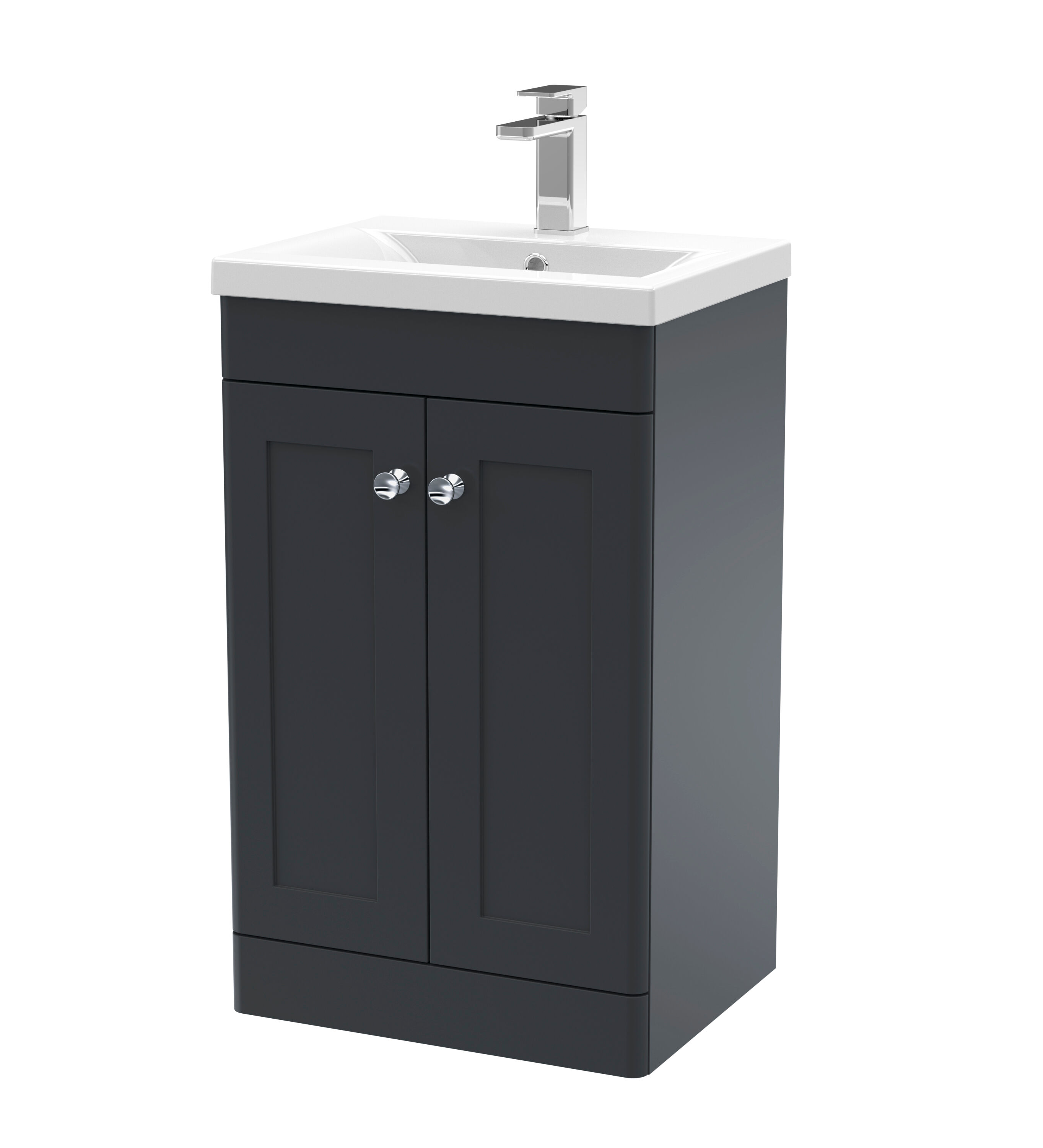 Nuie Classique 500mm Soft Black Floor Standing 2 Door Vanity Unit With 3 Tap Hole Basin
