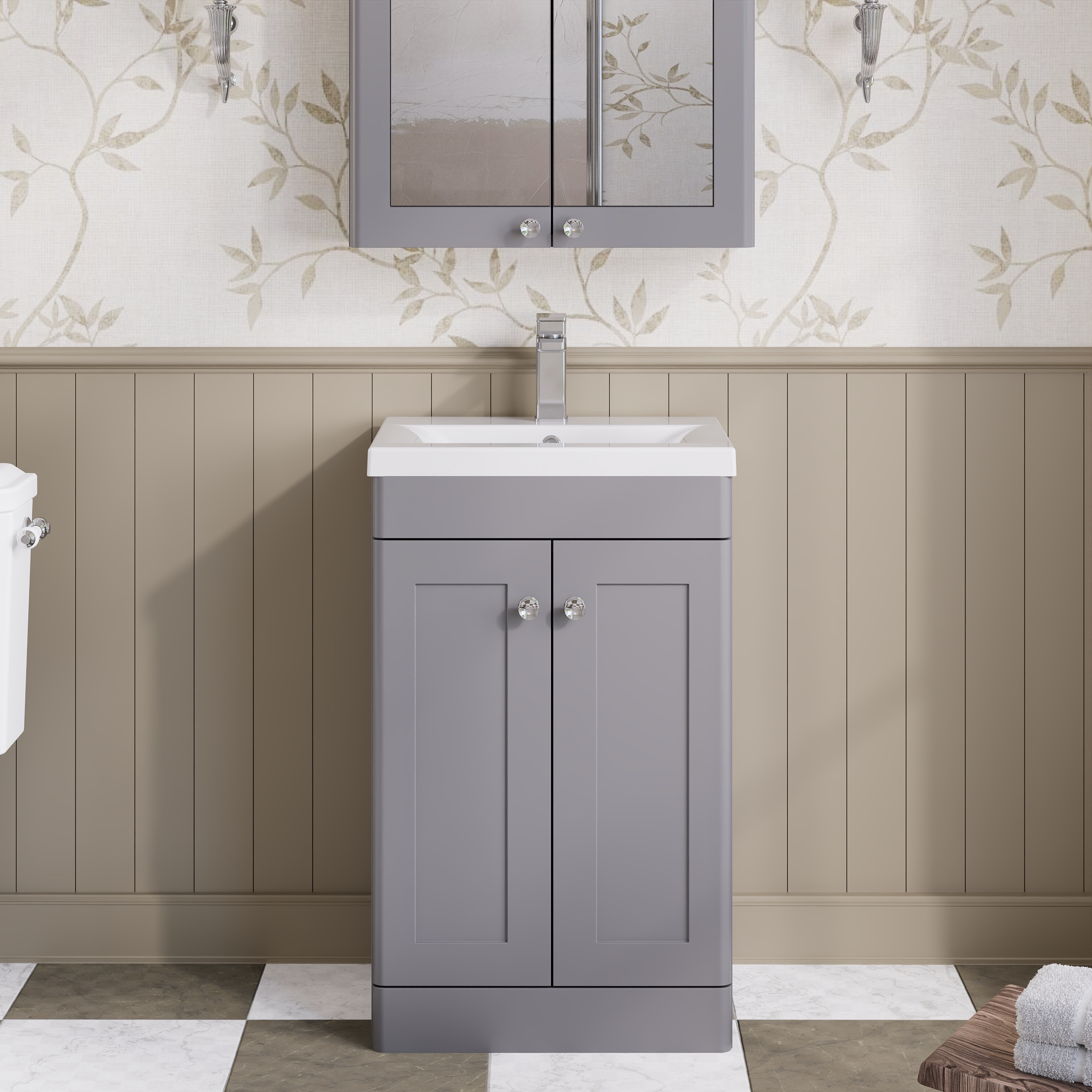 Nuie Classique 500mm Satin Grey Floor Standing 2 Door Basin Unit With Basin & Handles