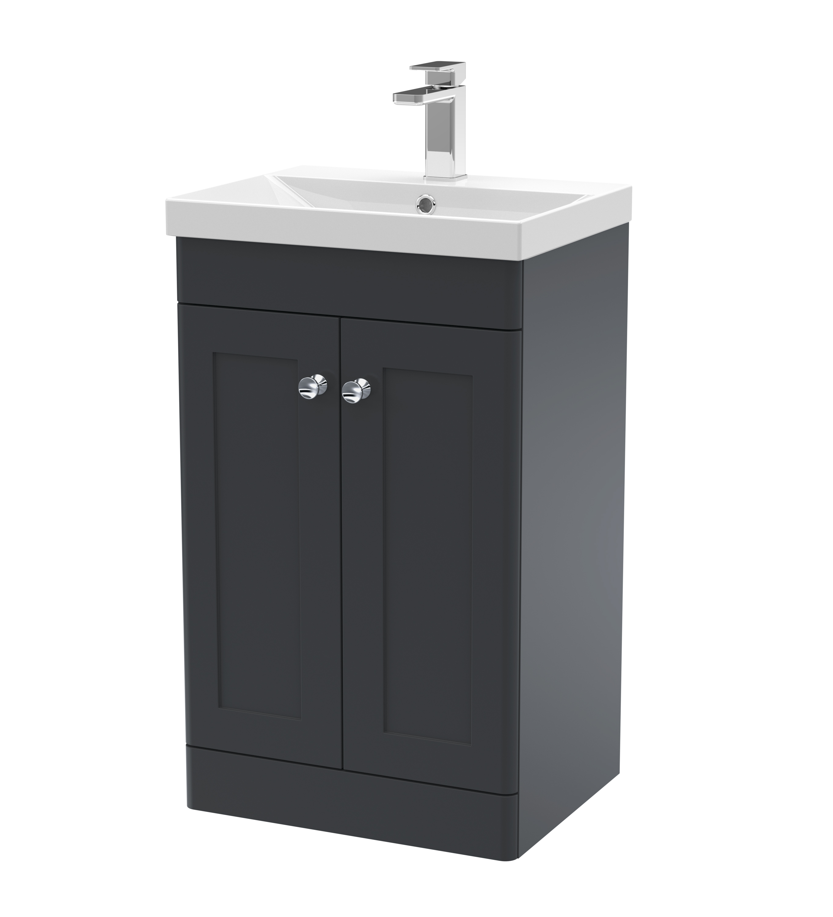 Nuie Classique 500mm Floor Standing 2 Door Vanity Basin Unit with 1 Tap Hole Basin