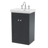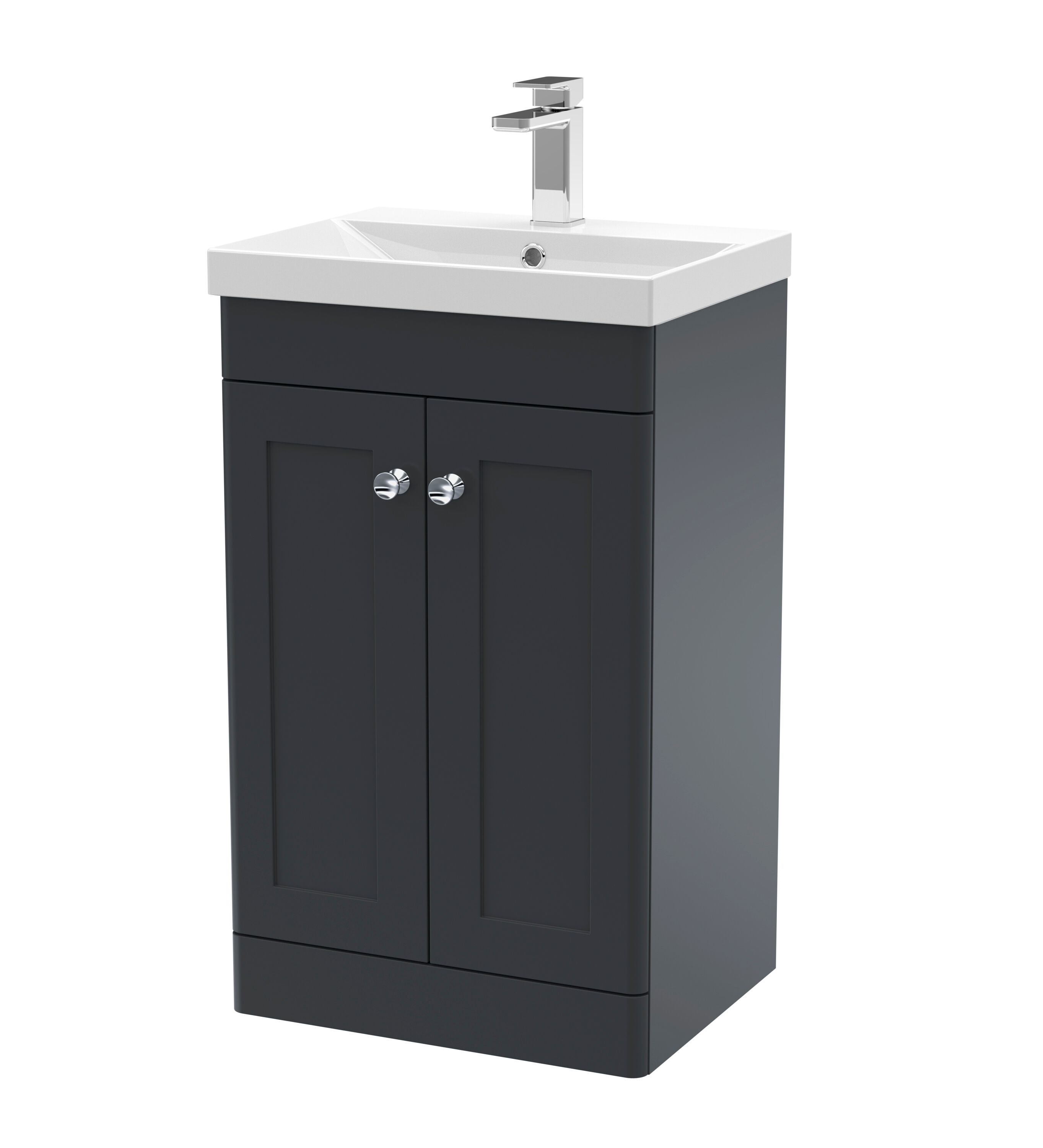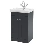 Nuie Classique 500mm Soft Black Floor Standing 2 Door Vanity Unit With 3 Tap Hole Basin