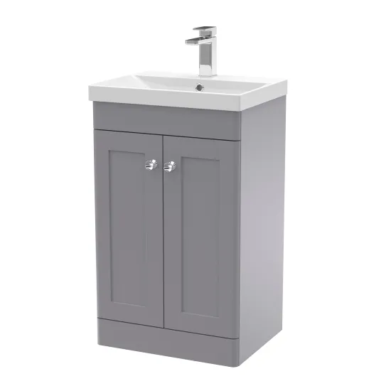 Nuie Classique 500mm Satin Grey Floor Standing 2 Door Vanity Basin Unit With 1 Tap Hole Basin