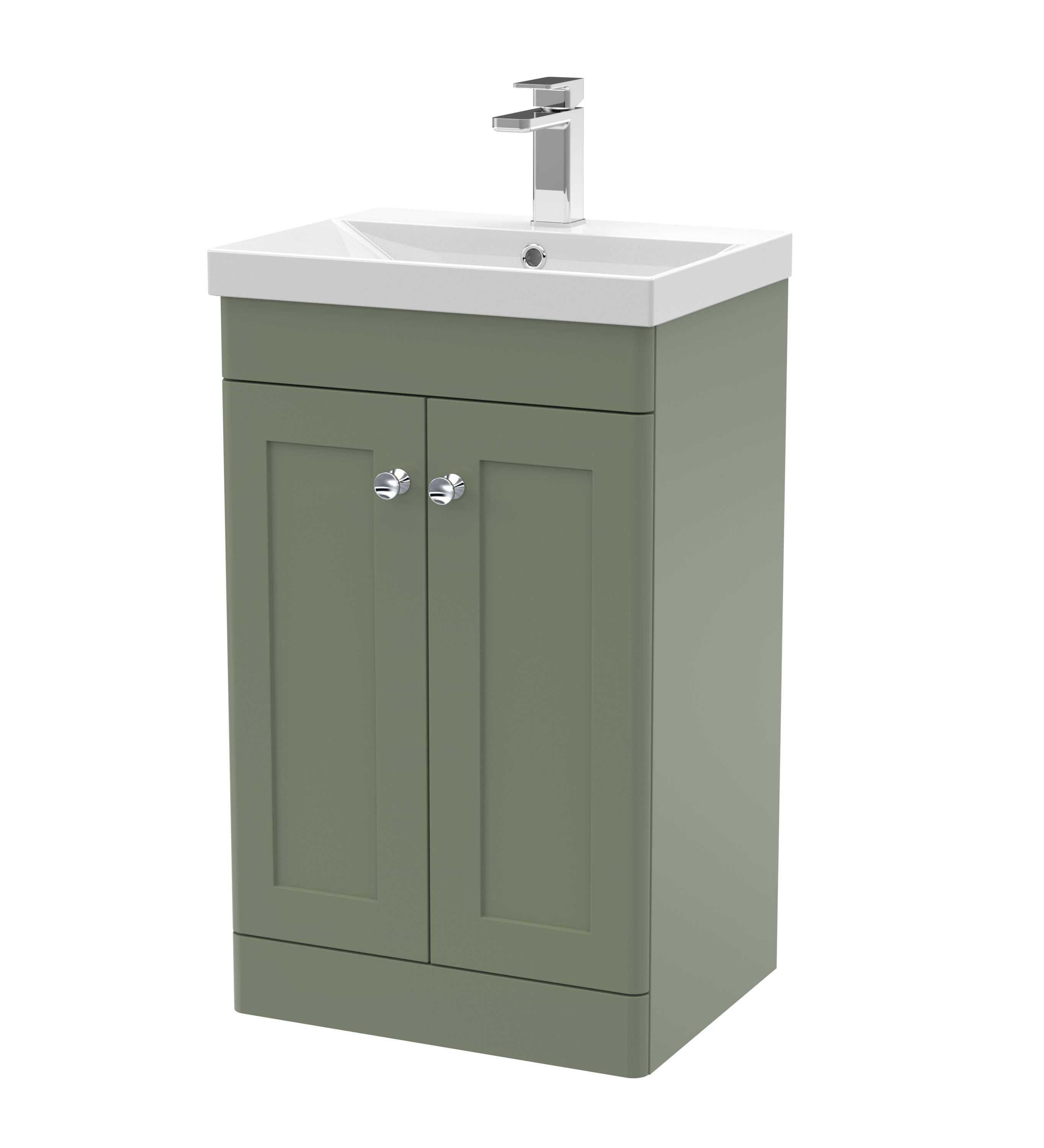 Nuie Classique 500mm Satin Green Floor Standing 2 Door Vanity Unit With Basin and Soft Close Doors