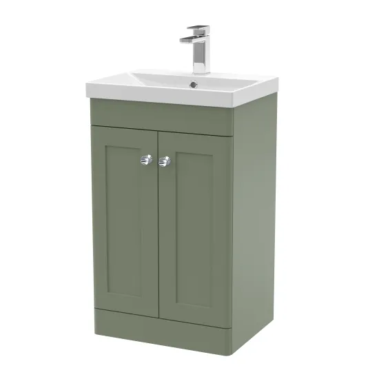Nuie Classique 500mm Satin Green Floor Standing 2 Door Vanity Unit with 1 Tap Hole Basin