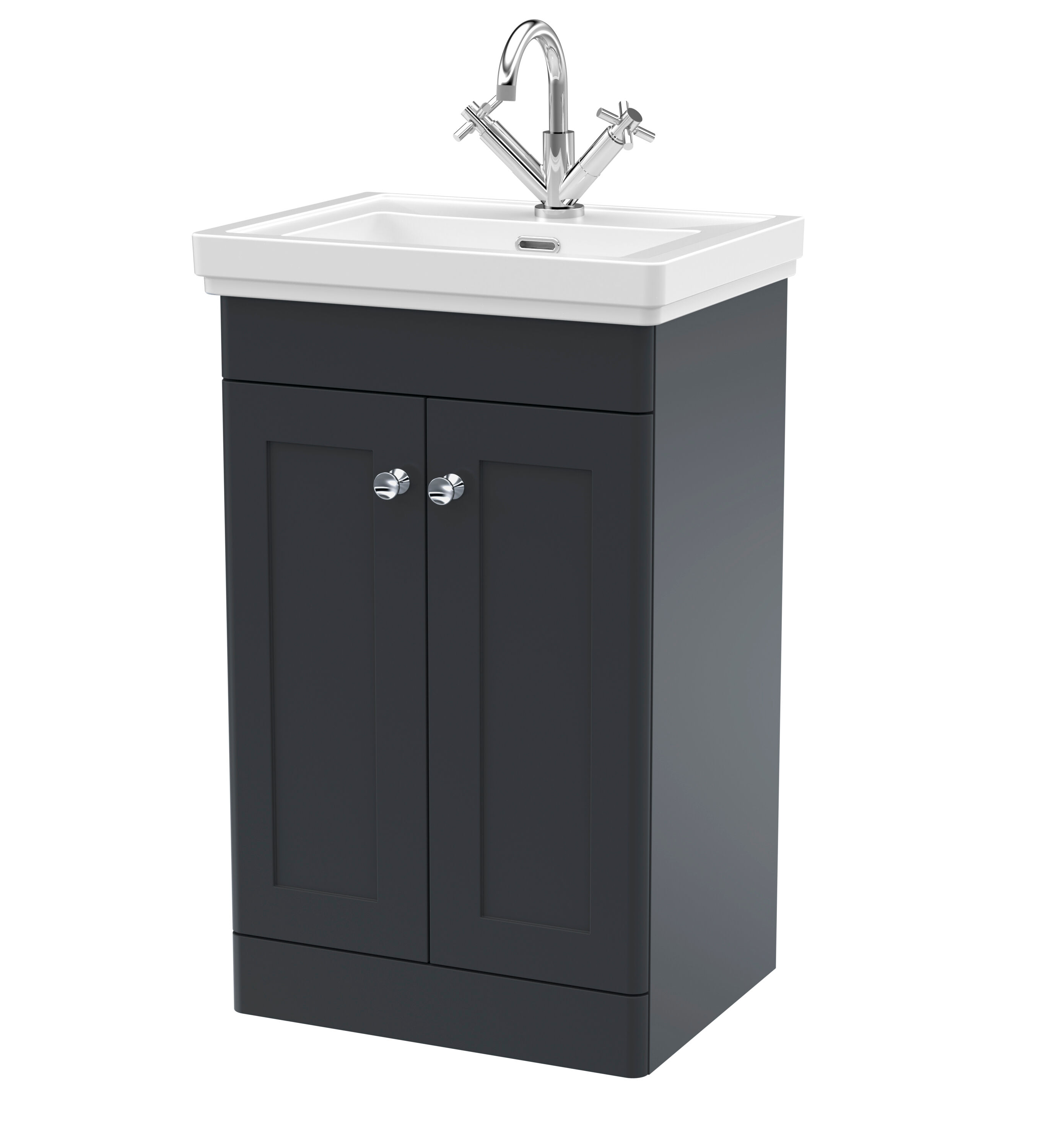 Nuie Classique 500mm 2 Door Soft Black Floor Standing Vanity Unit With 3 Tap Holes Basin
