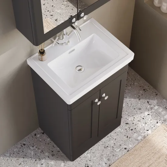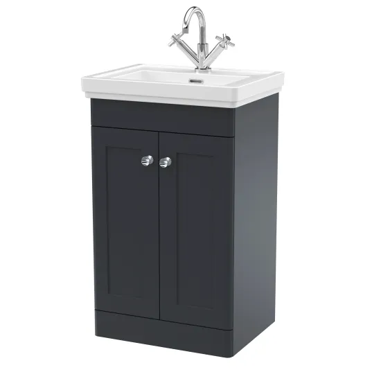 Nuie Classique 500mm 2 Door Satin Grey Floor Standing Vanity Unit With 1 Tap Hole Basin