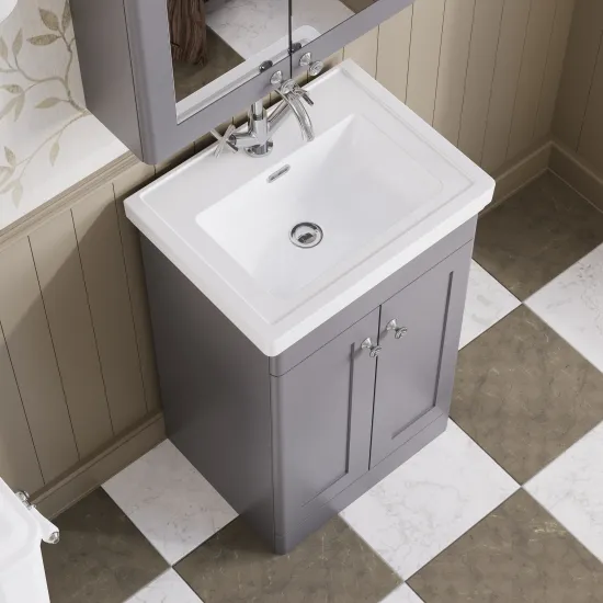 Nuie Classique 500mm Floor Standing 2 Door Vanity Unit with 3 Tap Hole Basin