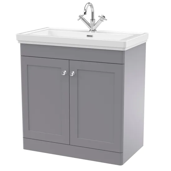 Nuie Classique 800mm 2 Door Satin Grey Floor Standing Vanity Unit With 3 Tap Holes Basin