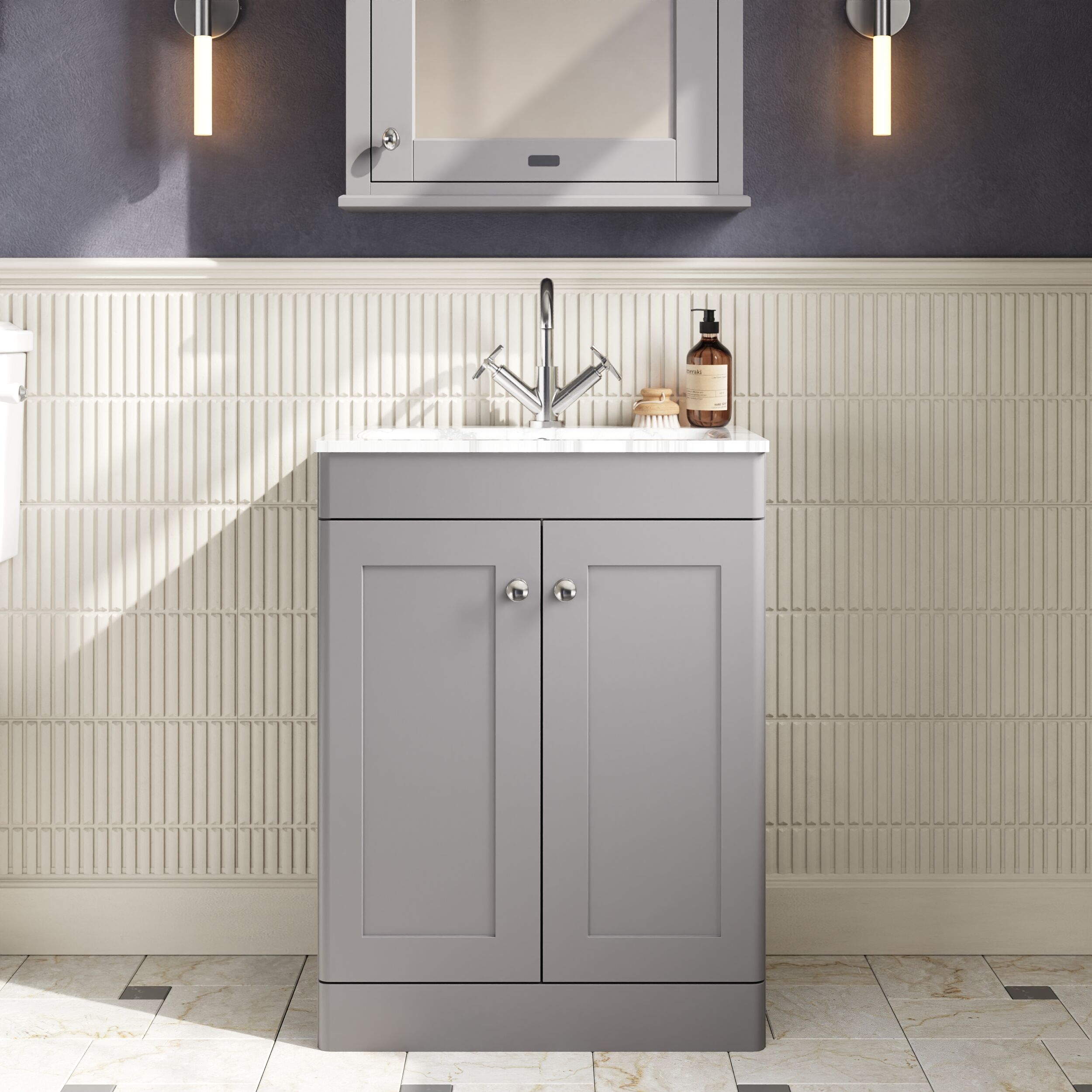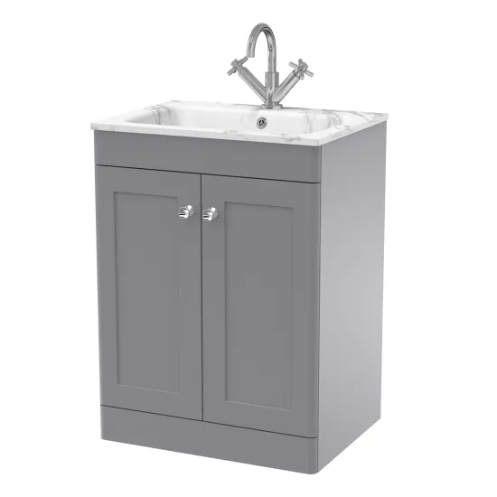 nuie Classique Floor Standing 2 Door Vanity Basin Unit & 1 Tap Hole Stone Basin, 600mm - Satin Grey