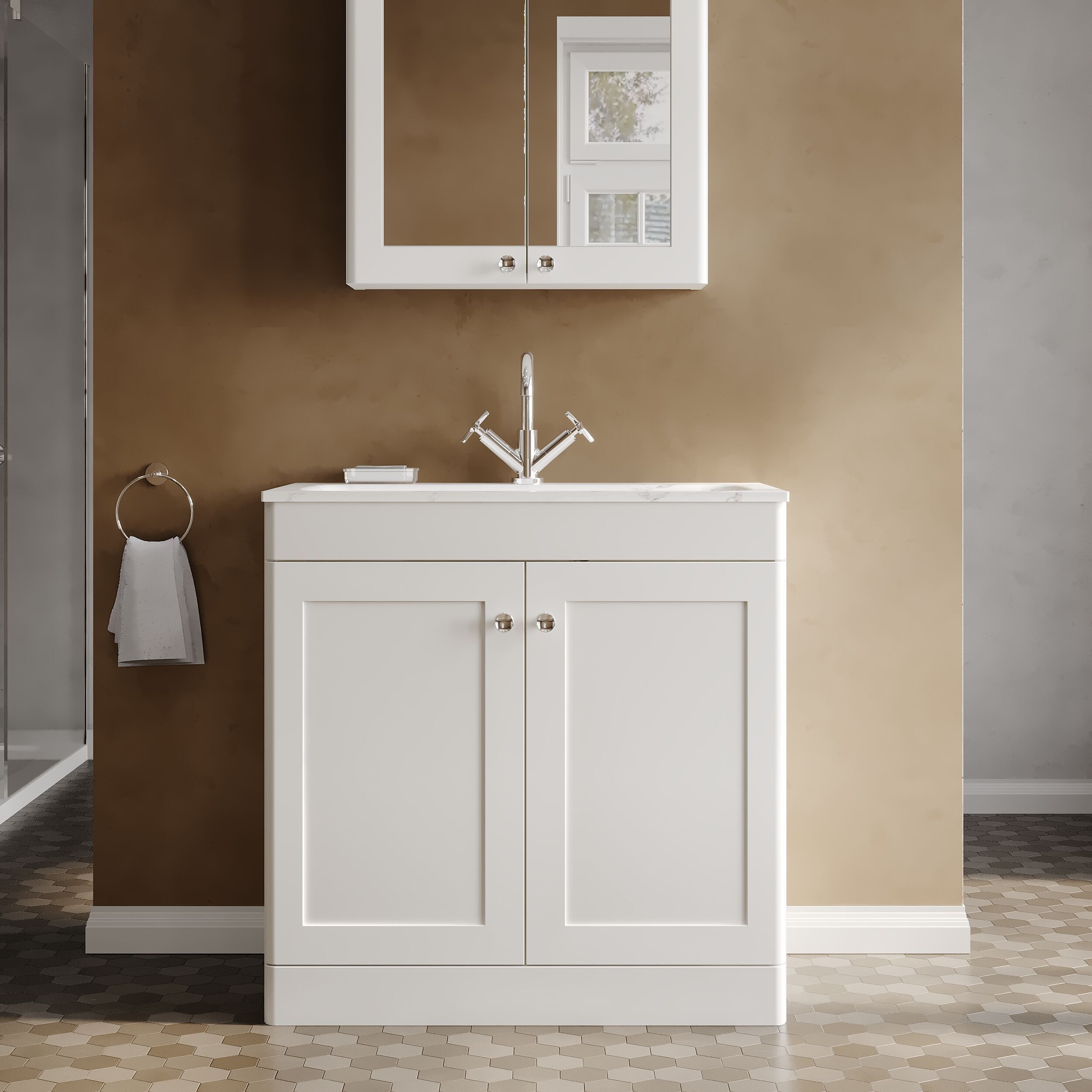 Classique Floor Standing 2 Door Vanity Basin Unit & 1 Tap Hole Stone Basin, 800mm