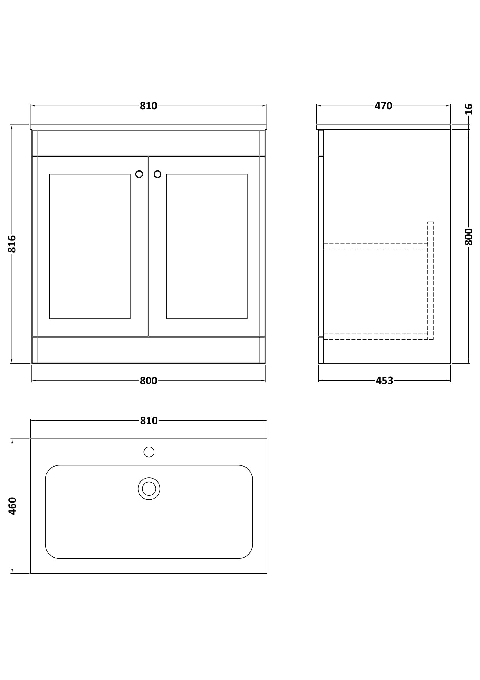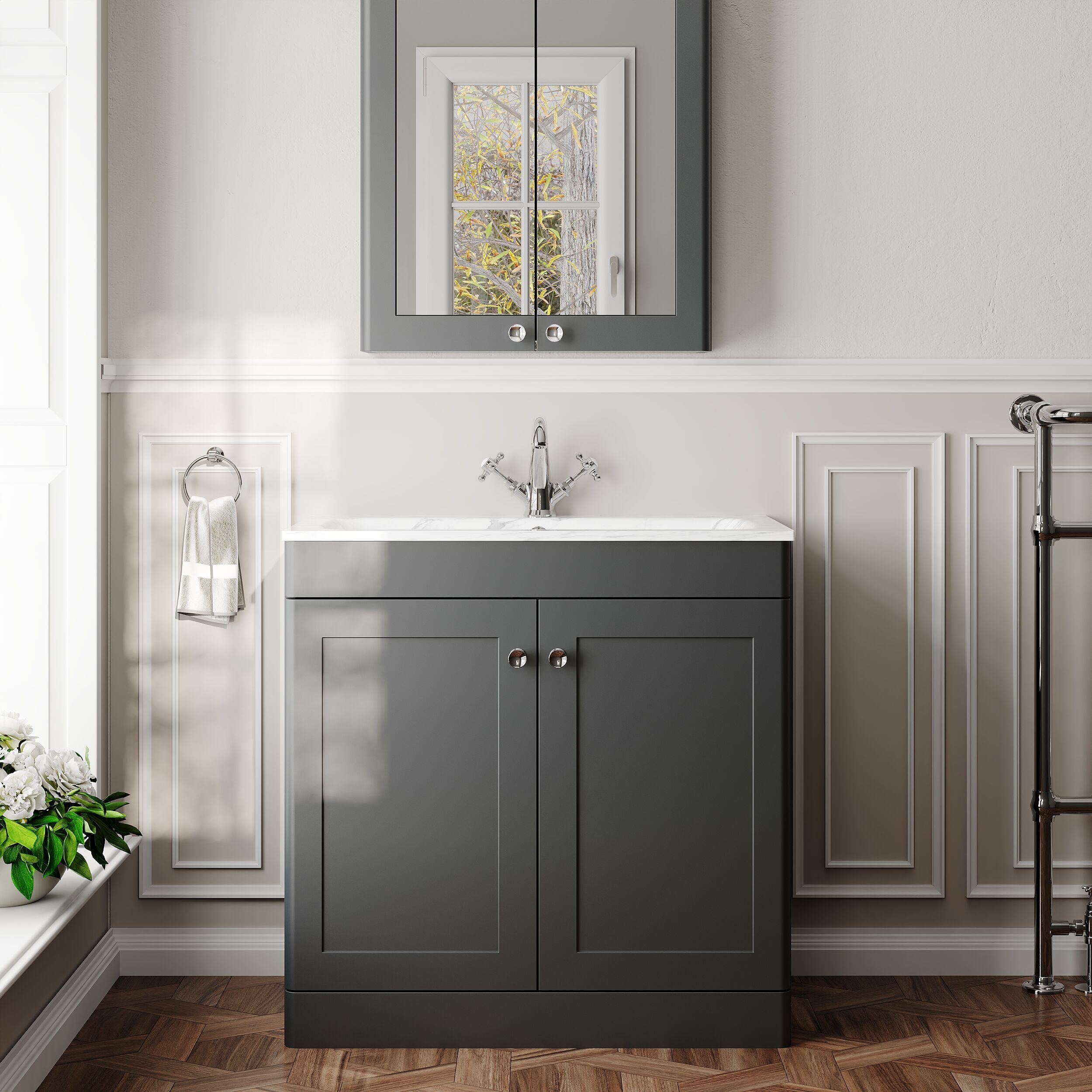 Classique Floor Standing 2 Door Vanity Basin Unit & 1 Tap Hole Stone Basin, 800mm