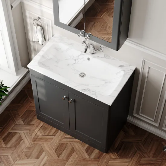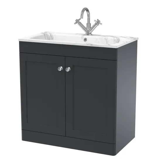 nuie Classique Floor Standing 2 Door Vanity Basin Unit & 1 Tap Hole Stone Basin, 800mm - Soft Black