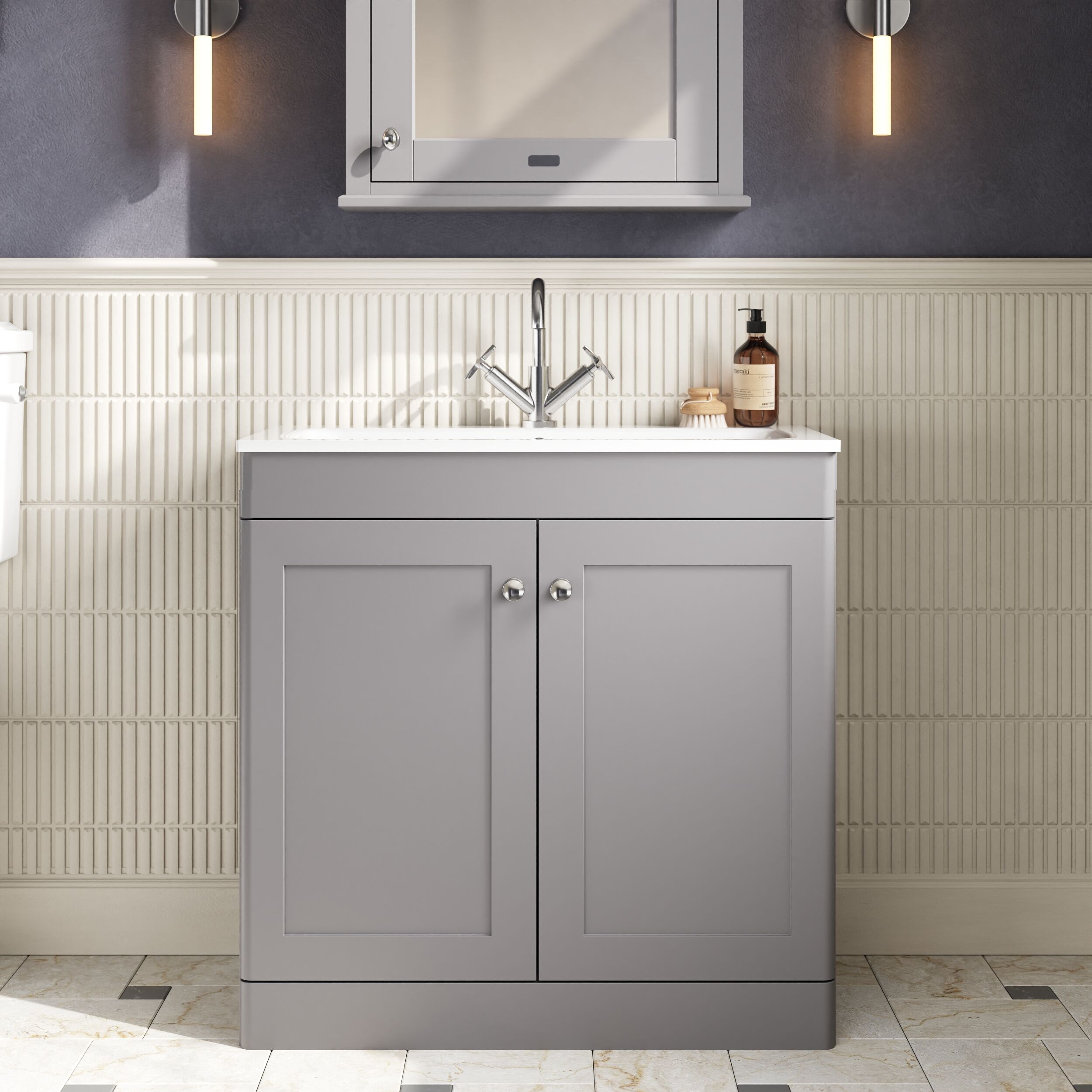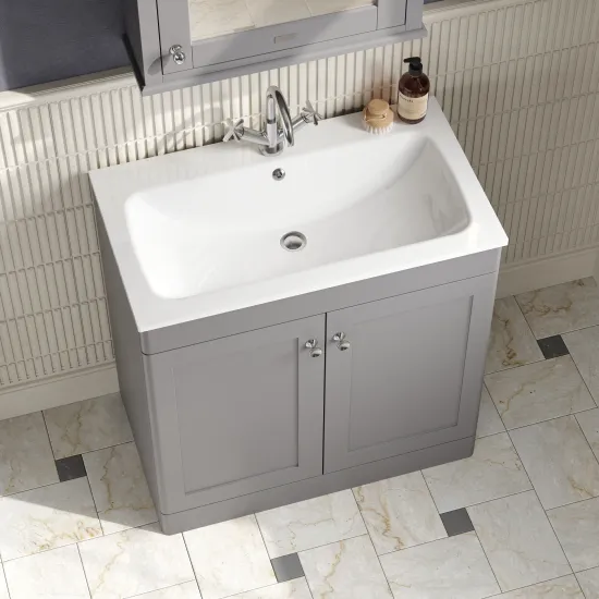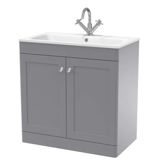 nuie Classique Floor Standing 2 Door Vanity Basin Unit & 1 Tap Hole Stone Basin, 800mm - Satin Grey