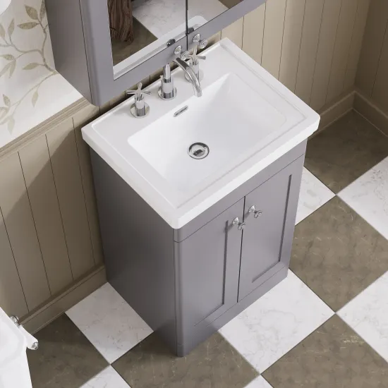 Nuie Classique 500mm Satin Grey Floor Standing 2 Door Vanity Basin Unit With 1 Tap Hole Basin