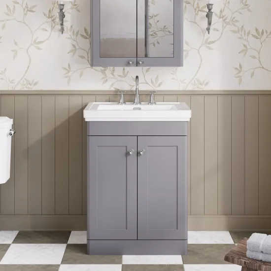 Nuie Classique 600mm Floor Standing 2 Door Vanity Unit With 1 Tap Hole Basin