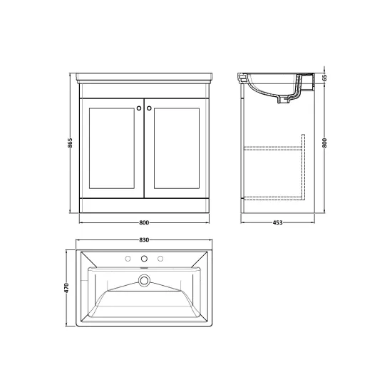 Nuie Classique 800mm 2 Door Soft Black Floor Standing Vanity Unit With 1 Tap Hole Basin
