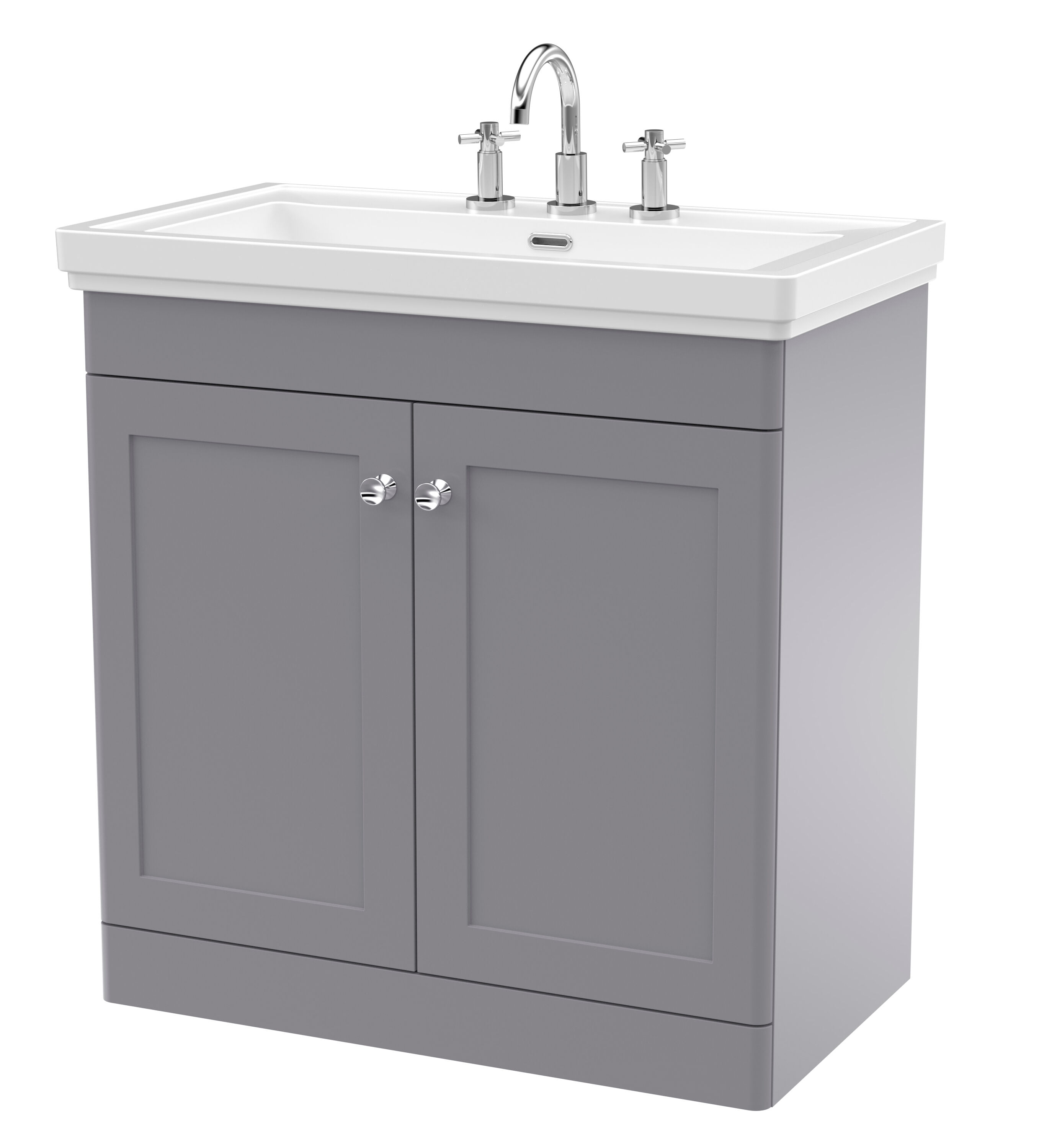 Nuie Classique 800mm 2 Door Satin White Floor Standing Vanity Unit With 3 Tap Holes Basin