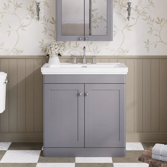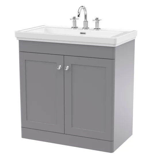 Nuie Classique 800mm 2 Door Satin Grey Floor Standing Vanity Unit With 1 Tap Hole Basin