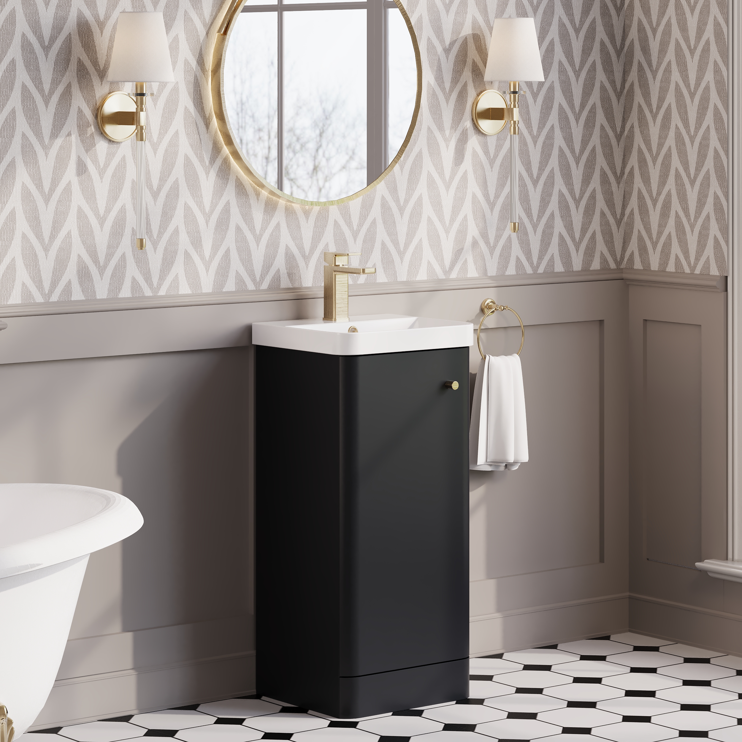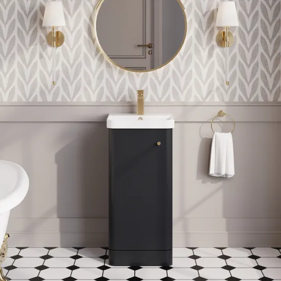Nuie 505mm Soft Black Floor Standing 2 Door Vanity Basin Unit With Ceramic Basin