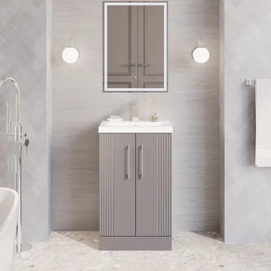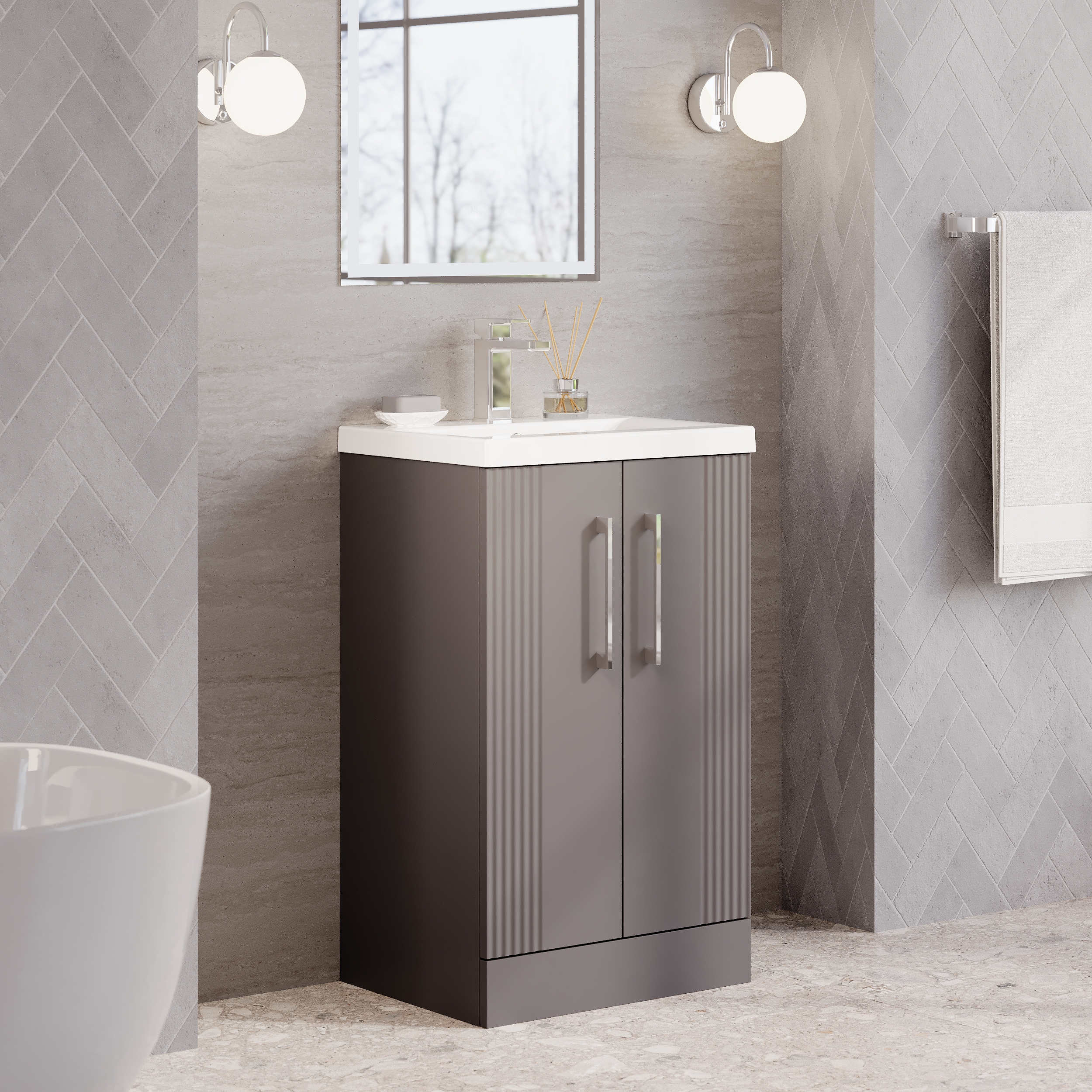 Nuie Deco 500mm Satin Grey Floor Standing 2 Door Vanity Unit & Basin With Handles