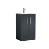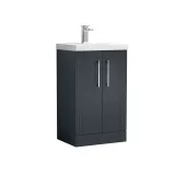 Nuie Deco 500mm Soft Black Floor Standing 2 Door Vanity Unit & Basin With Chrome Handles