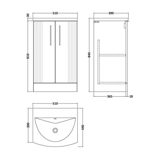 nuie Deco 500mm Floor Standing 2-Door Vanity & Curved Basin - Satin Blue