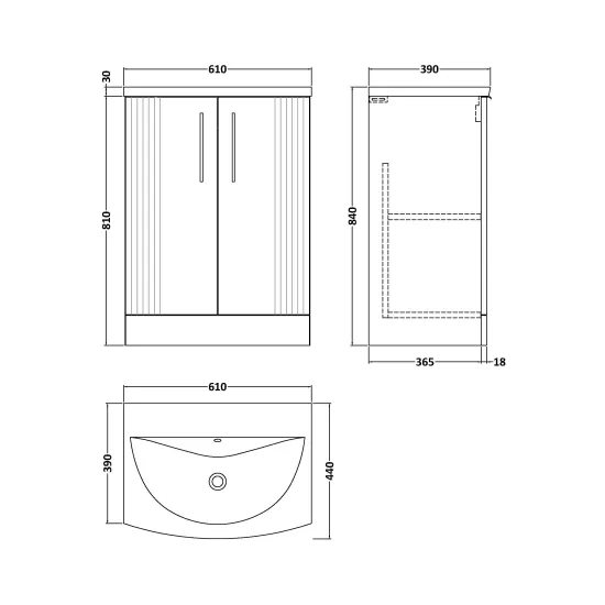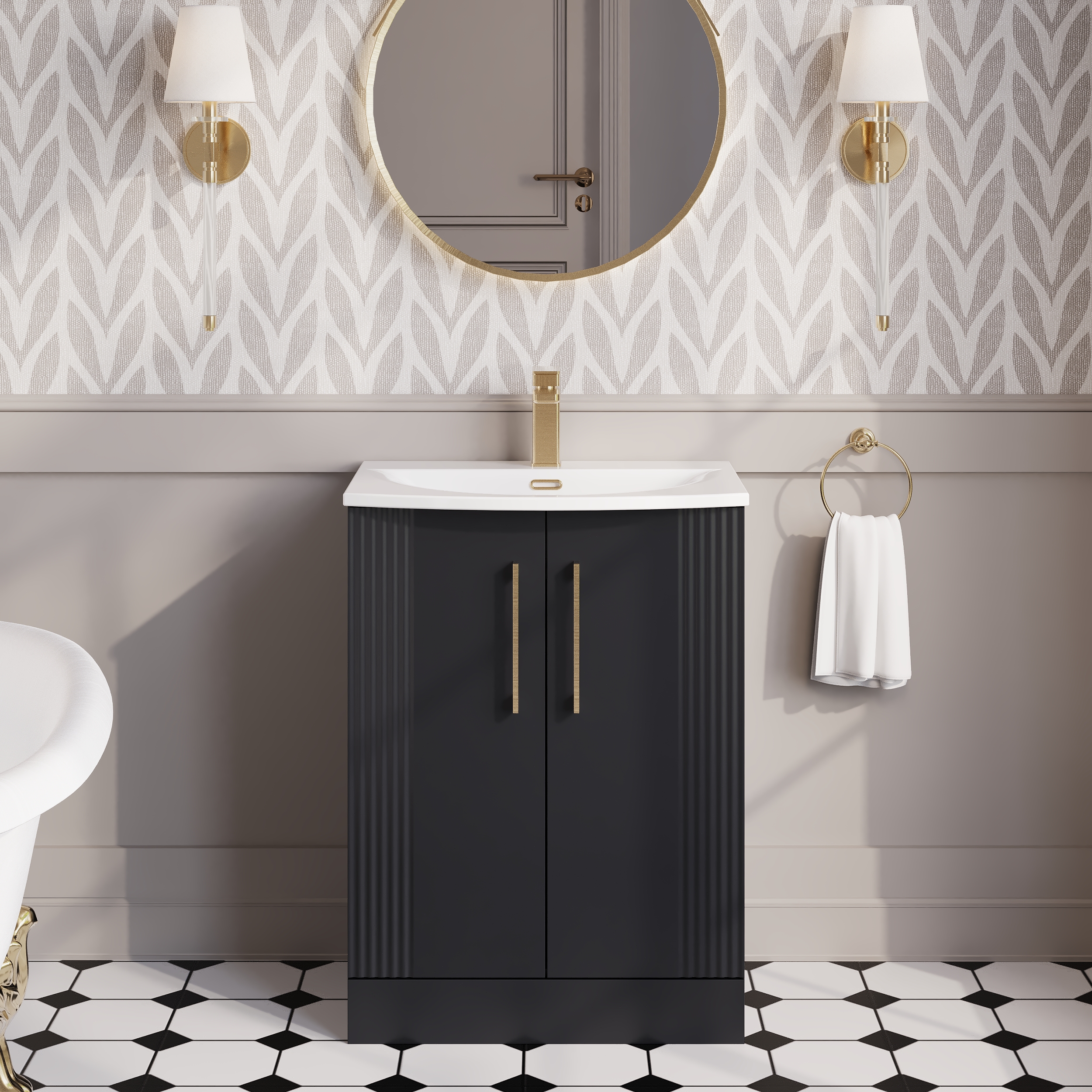 nuie Deco 600mm Floor Standing 2-Door Vanity & Curved Basin - Soft Black