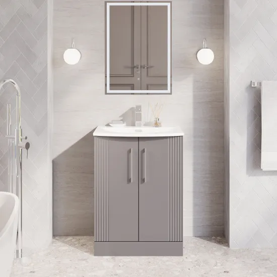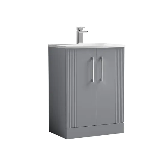 nuie Deco 600mm Floor Standing 2-Door Vanity & Curved Basin - Satin Grey
