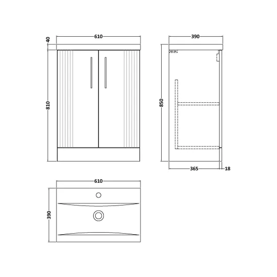 nuie Deco 600mm Floor Standing 2-Door Vanity & Mid-Edge Basin - Satin Green