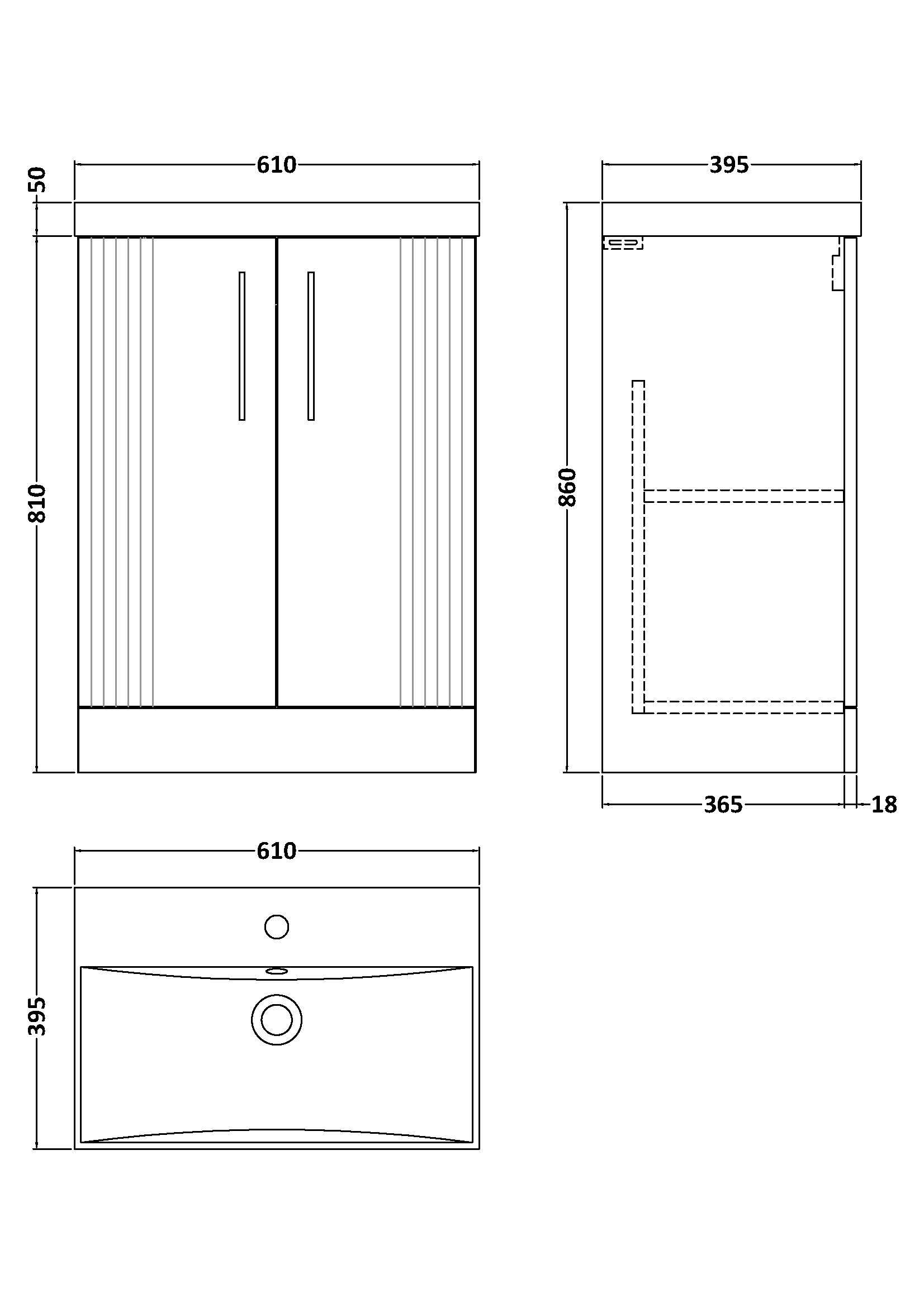 nuie Deco 600mm Floor Standing 2-Door Vanity & Thin-Edge Basin - Satin Grey