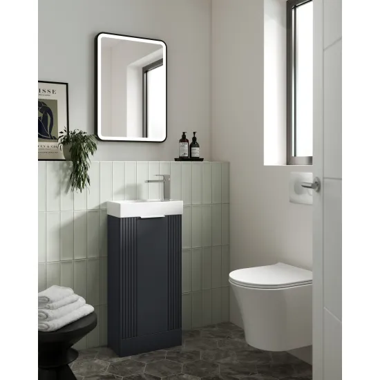 nuie Deco Compact Floor Standing 1 Door Vanity Basin Unit & Ceramic Basin, 400mm - Soft Black