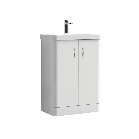 Arley Direction 600mm 2 Door Gloss White Floor Standing Vanity Unit With Basin