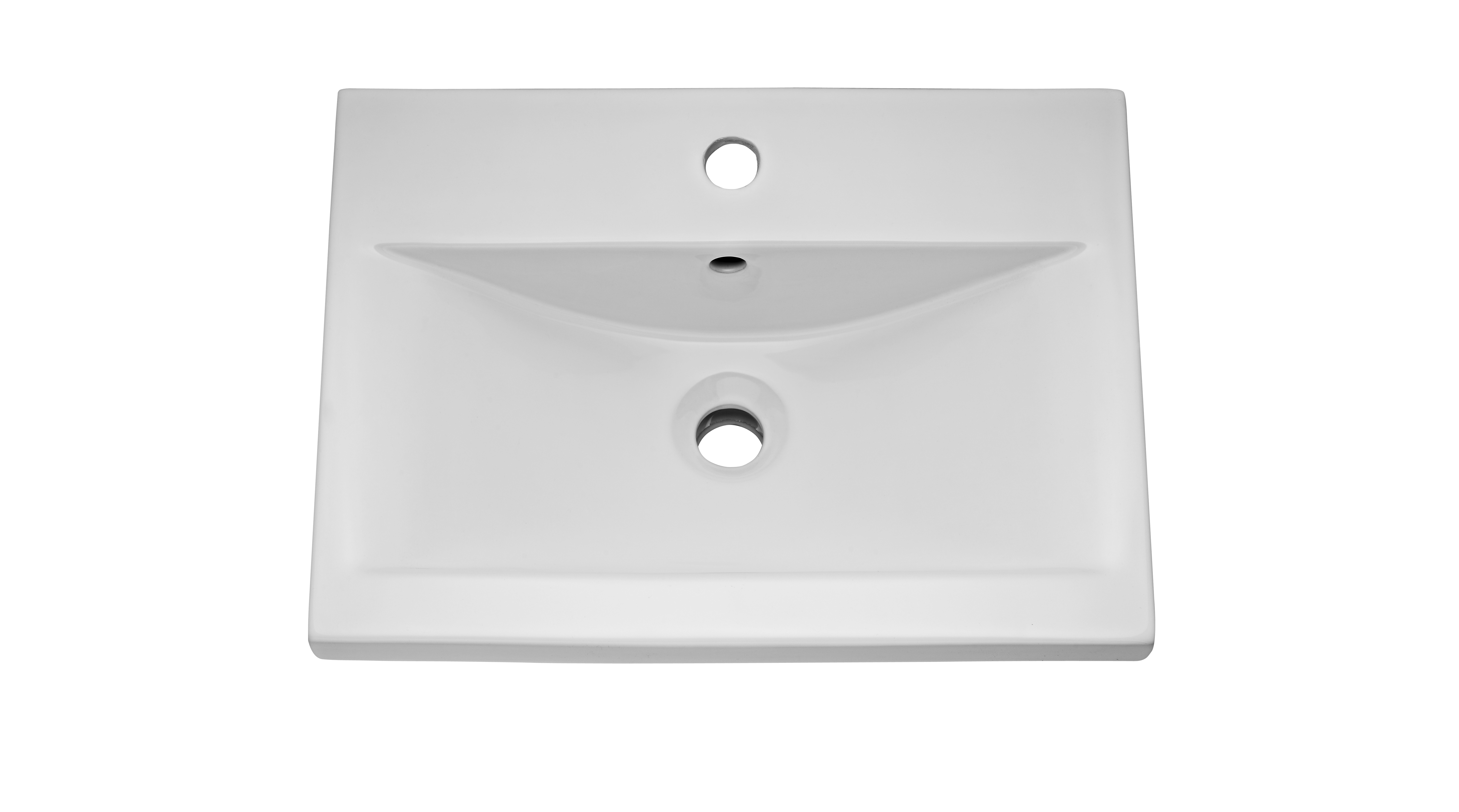 This basin has a deeper profile for a modern contrast with the furniture fascia