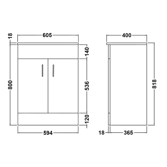 Nuie Choice Turin 600mm Floor Standing 2 Door Vanity Unit with Basin
