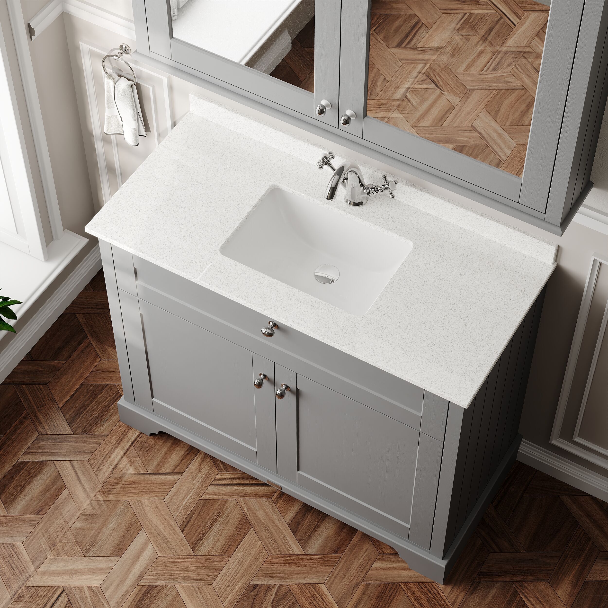 Hudson Reed Old London 1020mm Storm Grey Floor Standing 2 Door Vanity Unit With White Marble Top Basin & 1 Tap Hole