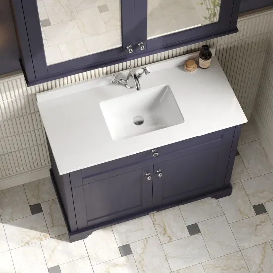 The striking finish of this Twilight blue unit will add contrast and impact to your traditional bathroom