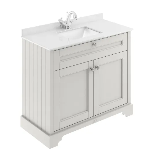 Old London Old London Timeless Sand Floor Standing 2 Door Vanity Basin Unit with Square Basin & 1 Tap Hole Marble Top, 1000mm - Timeless Sand