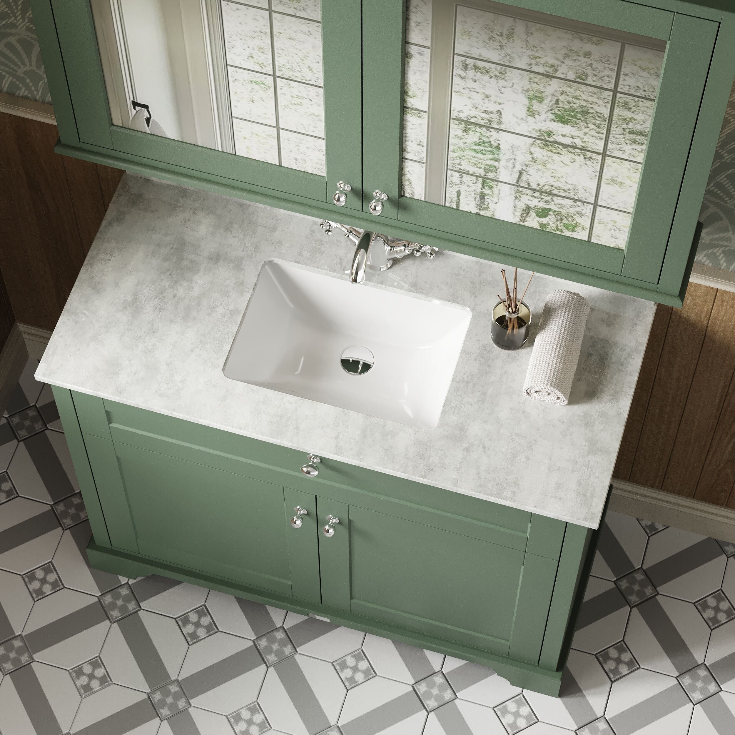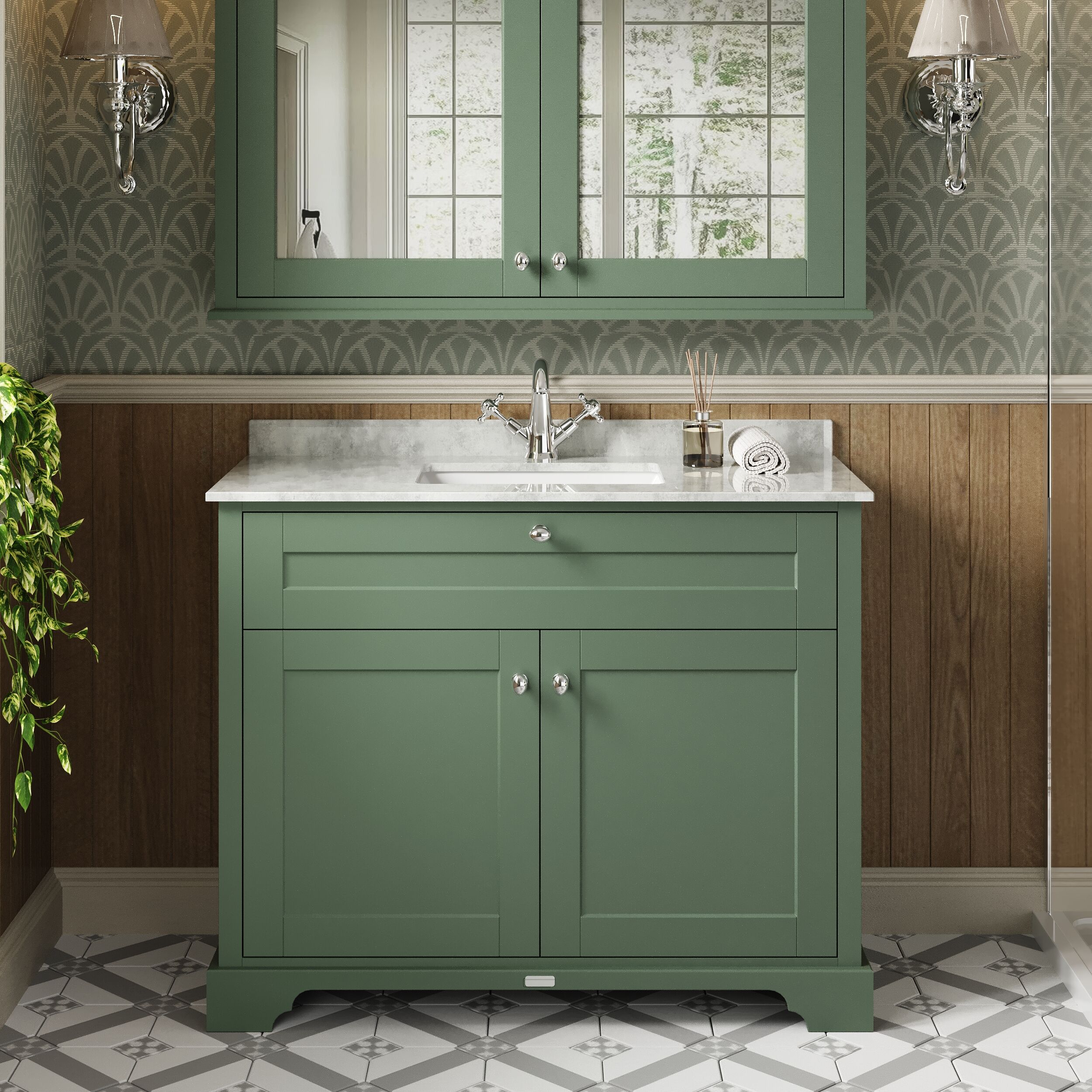 Old London Floor Standing 2 Door Vanity Basin Unit with Square Basin & 1 Tap Hole Marble Top, 1000mm - Hunter Green