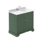 Hudson Reed Old London 800mm Hunter Green Floor Standing 2 Door Vanity Unit With White Marble Top Basin